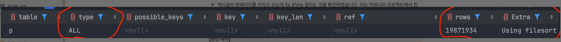 위와 같이 발생한 이유는 explain analyze명령어로 확인할 수 있다.